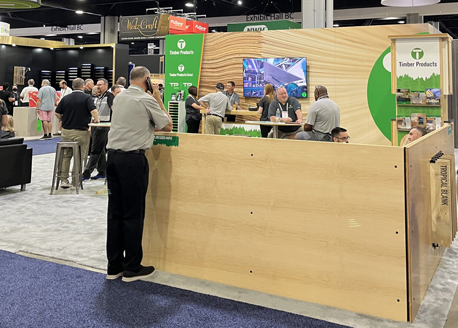 On August 6th – 9th, the Timber Products team was back once again at the International Woodworking Fair (IWF) in Atlanta, Georgia. The large Timber Products sign was hard to miss, and with over 25,000 attendees, our booth was constantly packed with familiar faces as well as new ones. As David Smith, VP of Panel Sales put it “The IWF show in Atlanta was a big success. The show seemed to be the best attended show post COVID. We had many current customers stop by for formal and informal meetings, which allowed our mill managers and salespeople to hear directly from the customer. Having our customers in the booth is a great way to showcase all our products. Many customers only buy one product line from us and might not be aware of all the different divisions at Timber Products. The booth does a great job showcasing all the different products Timber Products can provide our customers.”