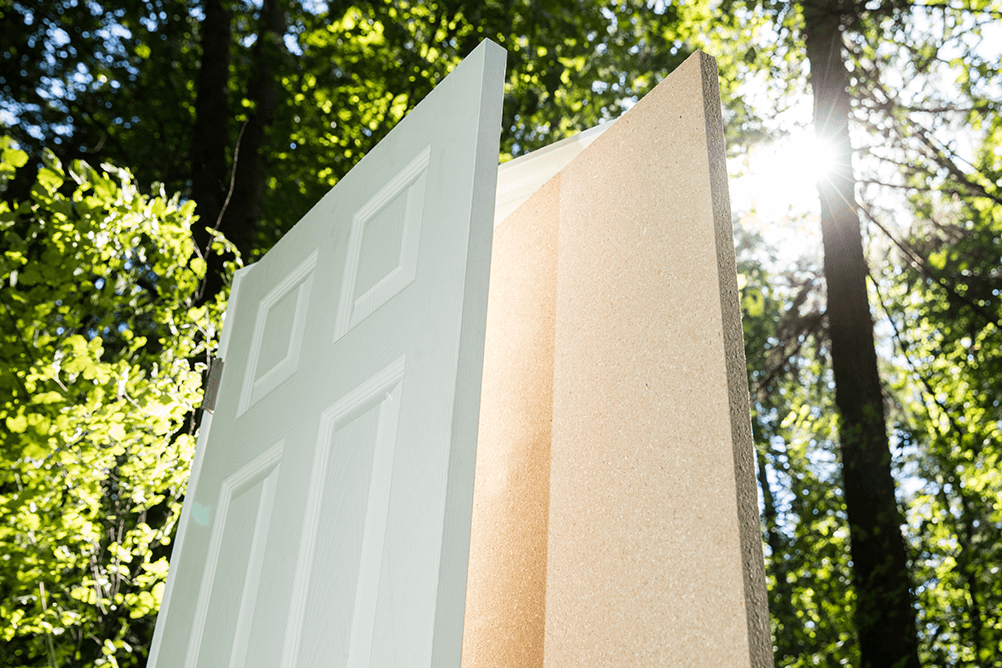 Particleboard door core is ideal for both exterior and interior doors. It creates a better surface for sanding and bonding door skins without telegraphing, and it reduces noise-levels compared with a standard hollow-core door.