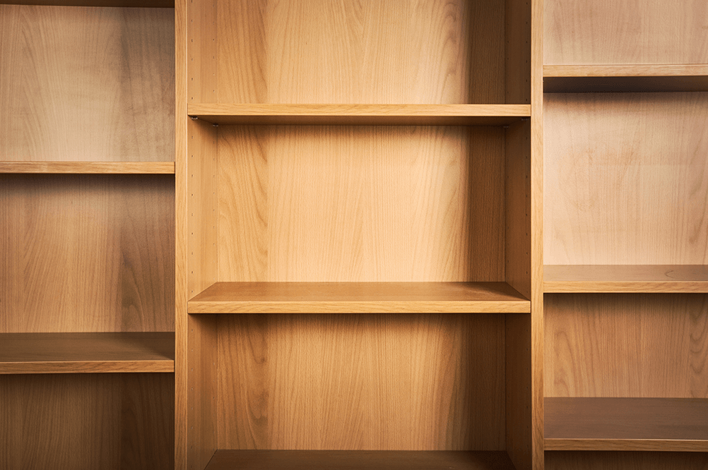 Particleboard shelves are uniform, economical, and can be painted, laminated or veneered. They also have good dimensional stability and load-bearing capacity when properly designed.